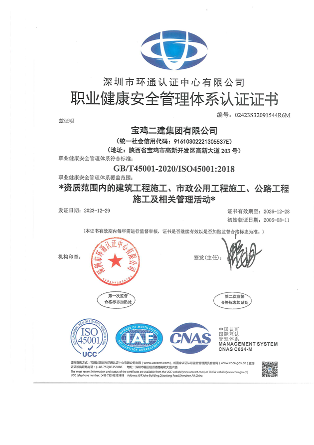 職業(yè)健康安全管理體系證書