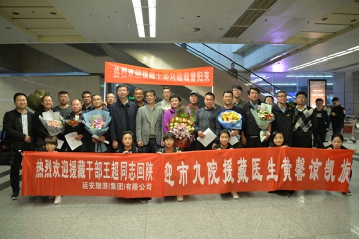 10月27日,陜西省委組織部、人社廳在咸陽國際機(jī)場(chǎng)為2017年第四批短期援藏16名干部舉行了簡(jiǎn)短而熱烈的接機(jī)儀式,歡迎援藏干部凱旋歸來,公司援藏干部劉超同志在列。寶雞市城鄉(xiāng)建設(shè)規(guī)劃局人教科科長(zhǎng)李泉、公司黨委書記景旭東、黨群工作部經(jīng)理沈?yàn)槊駞⒓觾x式。